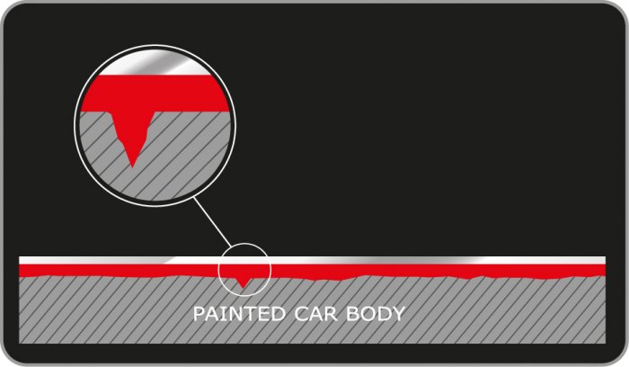 Wizyta u lakiernika często kończy się widocznymi na lakierze hologramami oraz ubytkiem w powłoce lakierniczej dochodzącej do 20-30 a nawet więcej mikronów! Pamiętajmy, że powłoka lakiernicza ma swoją określoną grubość – na cele tego artykułu przyjmij średnio 100 mikronów. Jak sami widzicie proces detailingu jest powtarzalny, kolejna „polerka” może skończyć się przebiciem warstwy bezbarwnego lakieru.