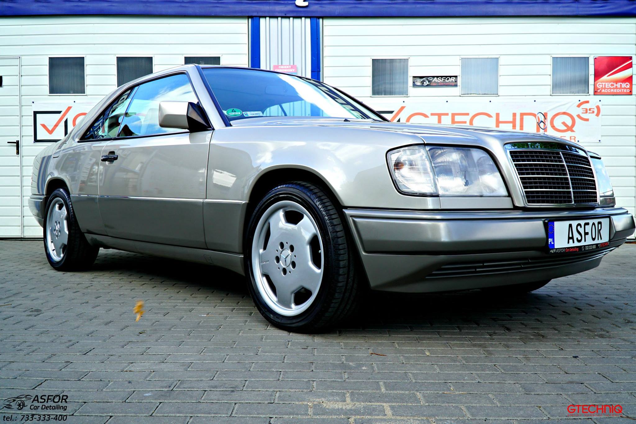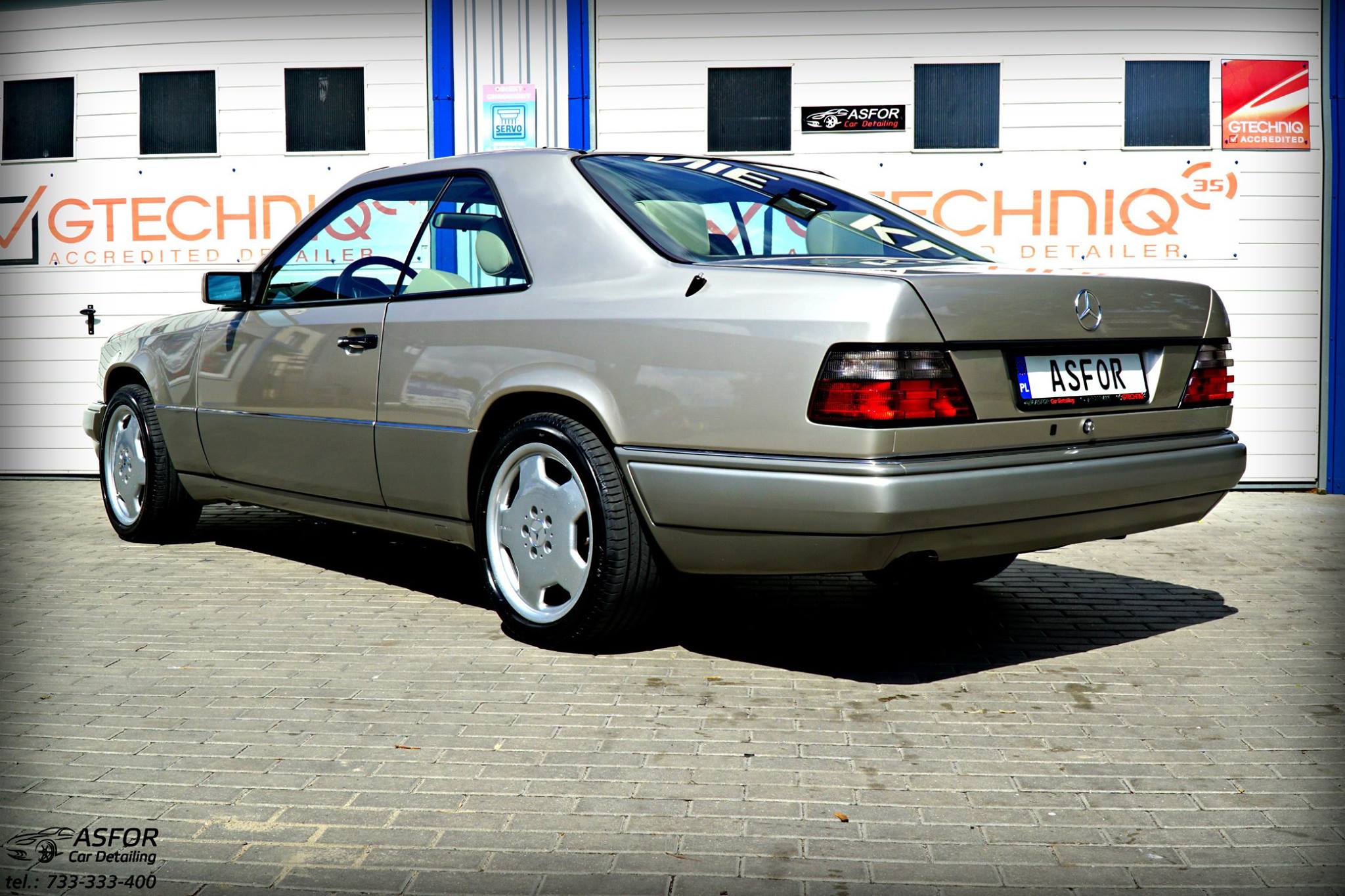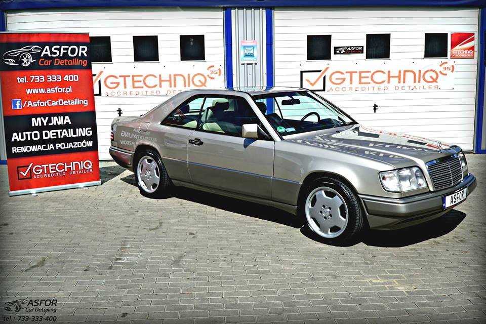 Czas na klasyczny rodzynek ze stajni Mercedes-BenzOto W124 Coupe z 1995 roku 3.2 benzyna 220KM,nad którym mieliśmy okazję pracować na początku wakacji.Właściciel jako dzieciak marzył o takim aucie.Po długich poszukiwaniach w Polsce,a także na rynku Niemieckim,wreszcie udało się znaleźć idealny,bezwypadkowy egzemplarz z udokumentowanym przebiegiem 150 tyś.km!!!Brakowało mu tylko dopieszczenia szczegółów-kosmetyki zewnetrznej i wykończenia wnetrza.Zatroszczyliśmy się,by ten klasyk uległ skromnej przemianie,przechodząć przez ręce naszej ekipy,podczas tygodniowej pracy.Pozdrawiamy serdecznie właściciela-oto pełny opis wykonanych usług: dekontaminacja i mycie detailingowe uzupełnianie odprysków lakieru SSR Polska odświeżanie elementów chromowanych i lamp tylnich pełna korekta,na na tyle na ile pozwoliła grubość lakieru powłoka ceramiczna na 5 lat,zabezpieczajaca przed mikrozarysowaniami- Gtechniq Crystal Serum Light 9H powłoka hydrofobowa na lakier,uzupełniajaca zdolności samooczyszczania – Gtechniq EXO V3 dzieki aplikacji powłok pernamentnych,gumowe i plastikowe elementy zewnętrzne na stałe nabrały satynowego wykończenia felgi zabezpieczone powłoką ceramiczną powłoka na hydrofobowa na szyby- pozwoli na bezpieczne i skuteczne odpychanie wody podczas deszczowej pogody wnętrze auta wyczyszczone,pokryte dressingami antystatycznymi wszystkie tekstylia wewnątrz wyprane i zabezpieczone fotele i elementy skórzane wyczyszczone i zabezpieczone formułą Bio Cote,eliminując wnikanie cząsteczek brudu i barwników w strukturę skóry
