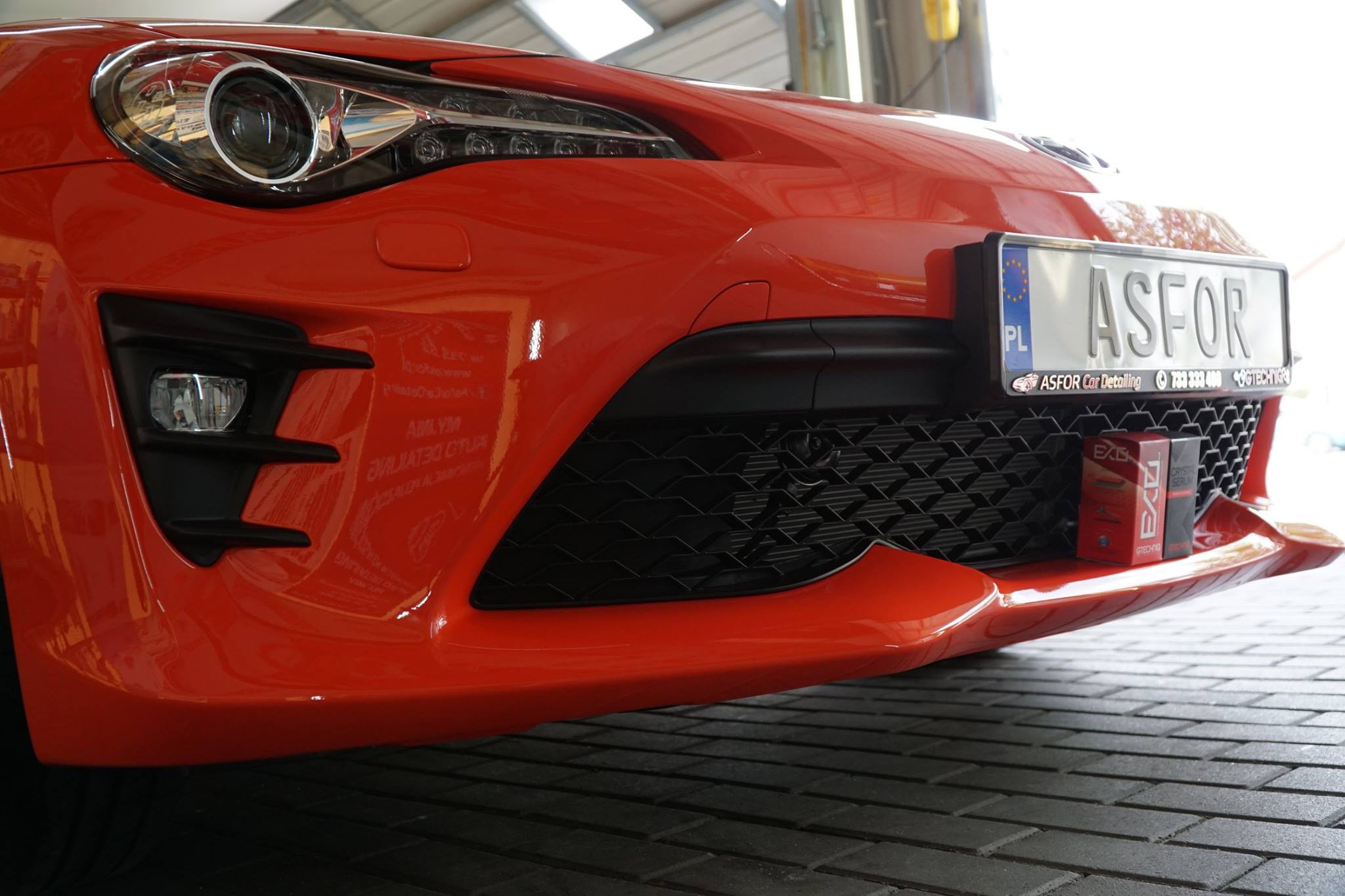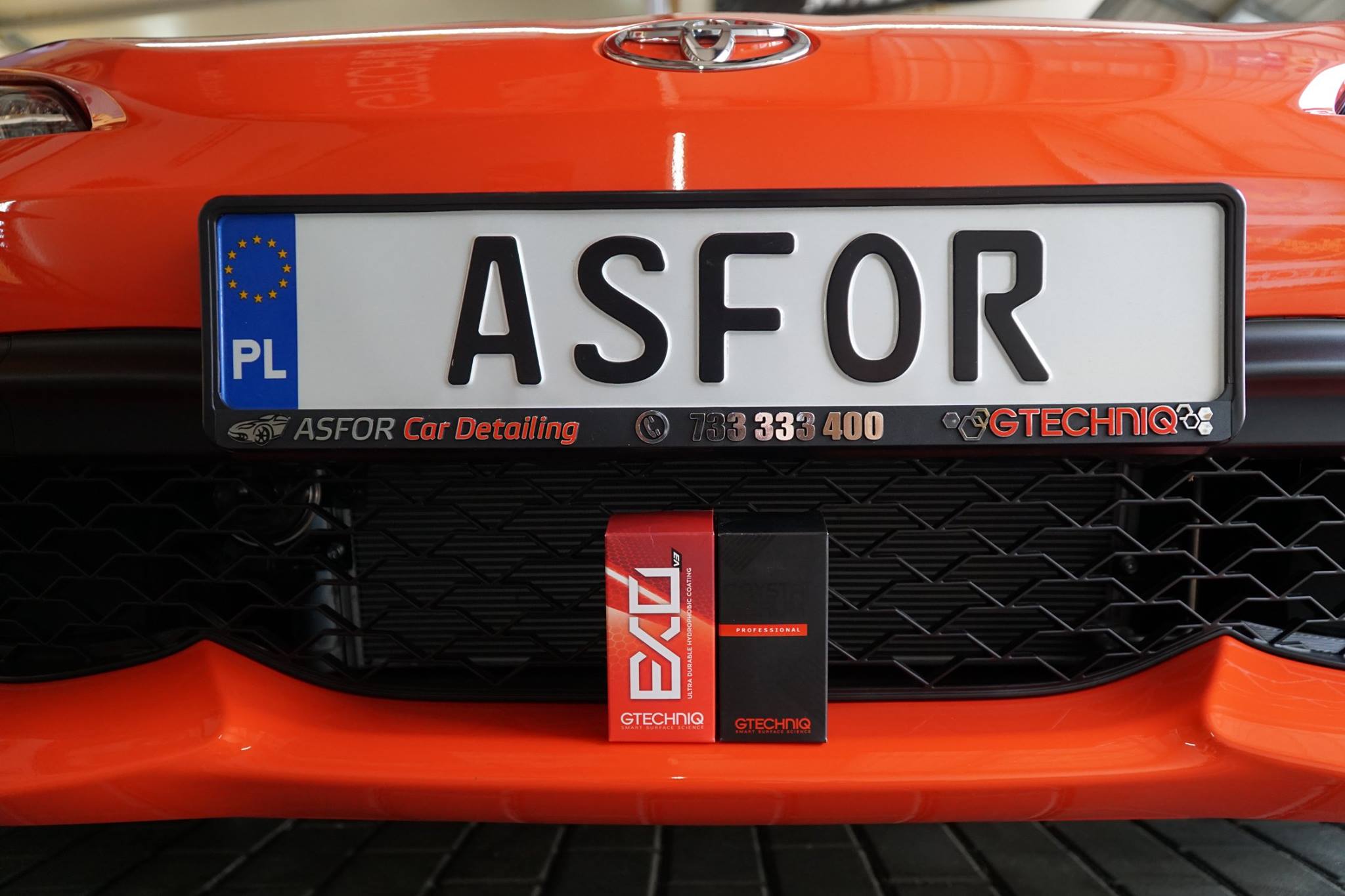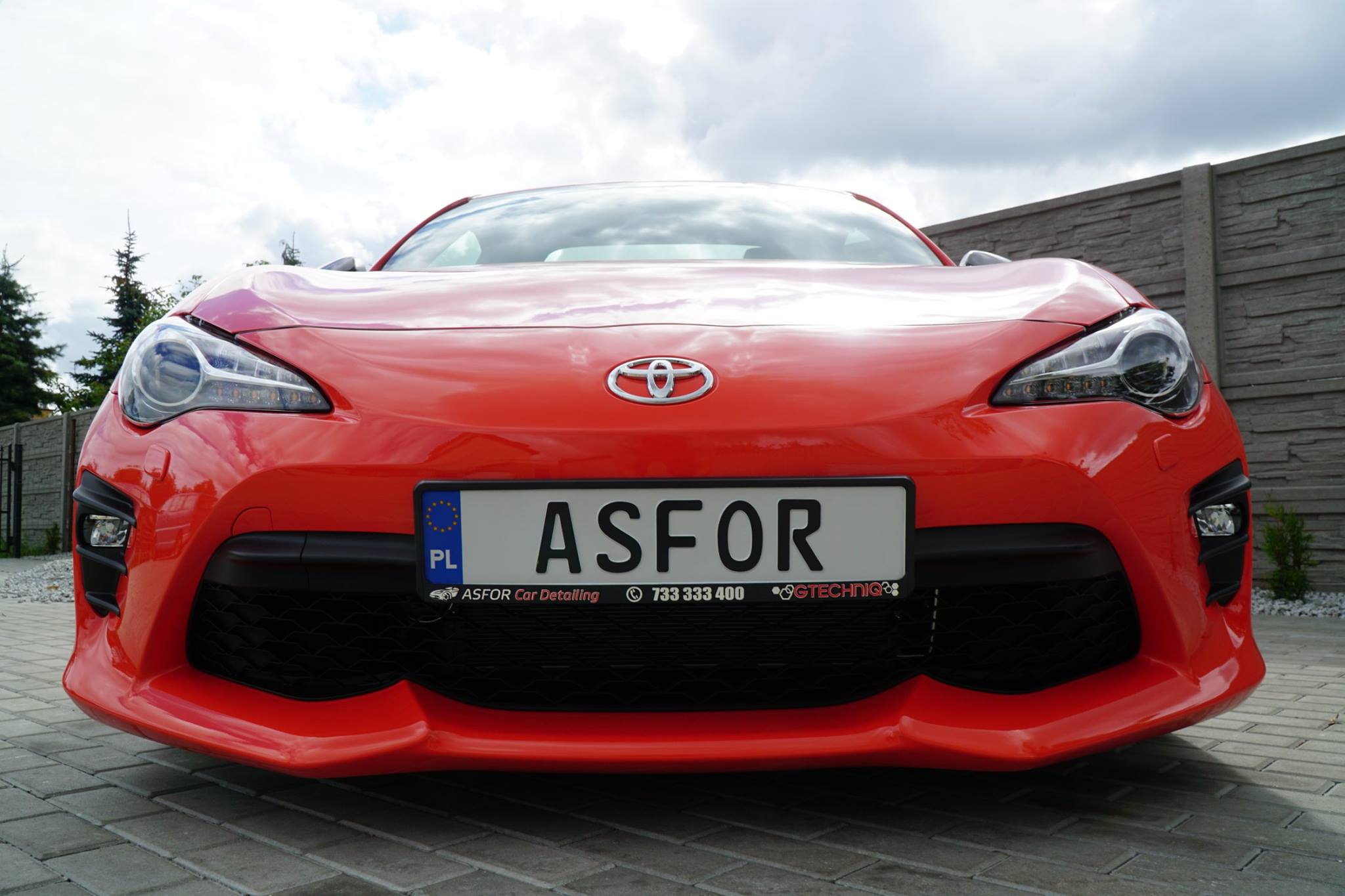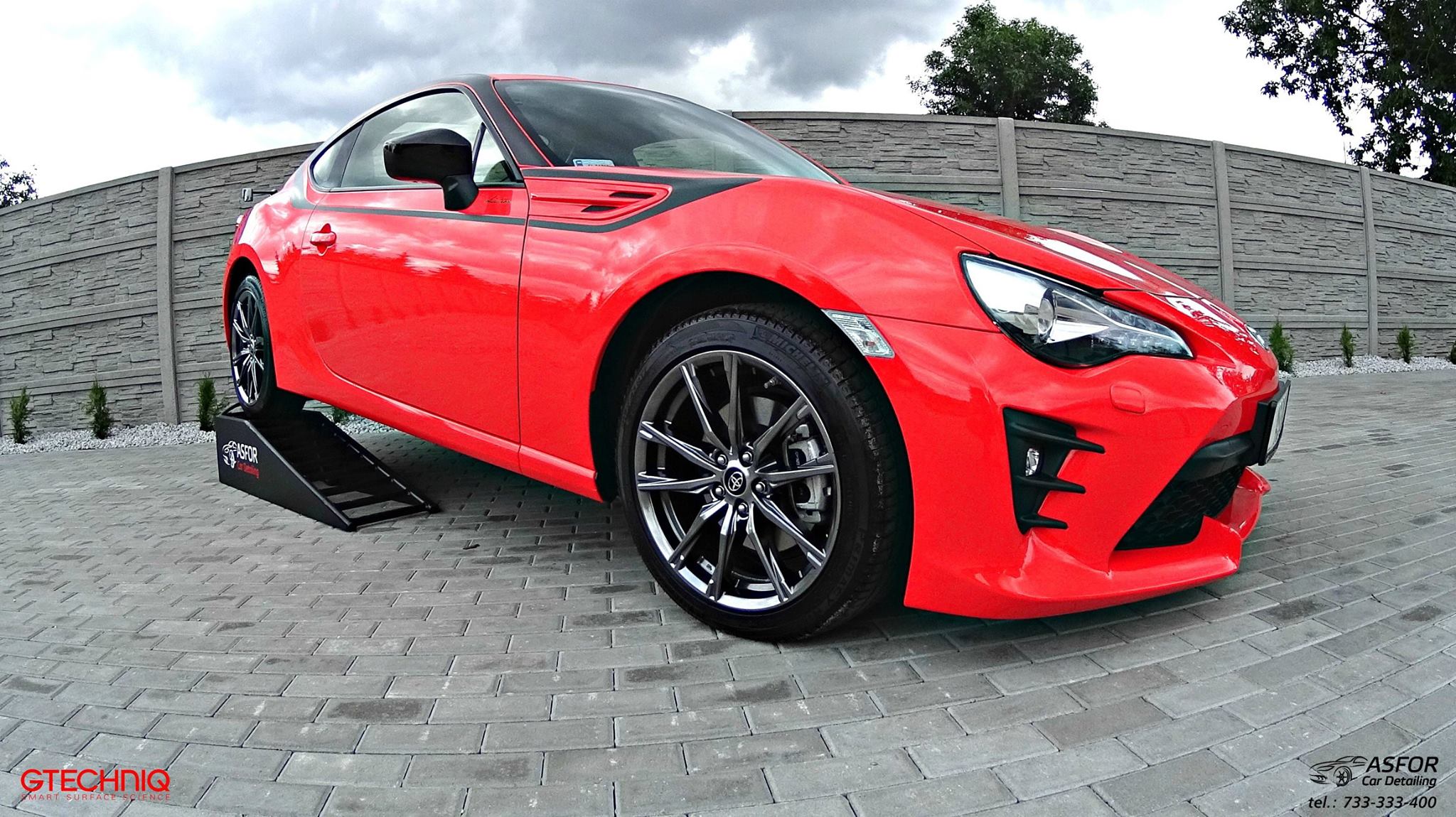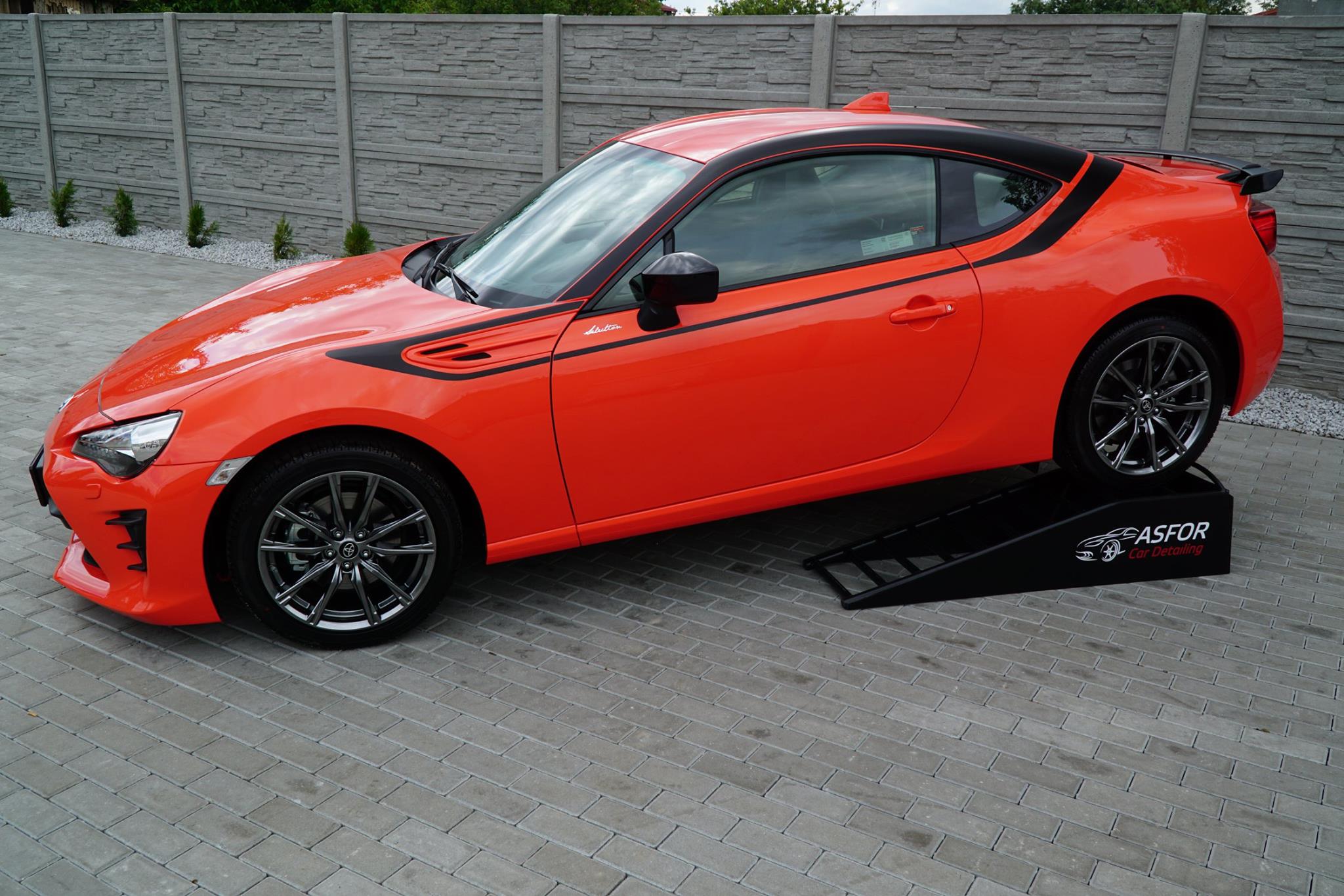 Nowa Toyota GT86 Selection Flame. W tej wersji,tylko 10 sztuk ze 184 na Europę trafiło na rynek Polski! 200 konna GT86 z silnikiem Subaru,wyróżnia się wyścigowymi wyklejanymi pasami i ciemnymi elementami zzewnatrz: lusterka,spojler i felgi 17 cali.Wewnatrz kilka innych dodatków,skóra i pomarańczowe przeszycia. Toyota przyjechała do nas pod koniec lipca z Toyota Zduńska WOLA na zabezpieczanie wszystkich mozliwych powieszchni preparatami od Gtechniq Polska : felgi szyby tworzywa sztuczne wnetrze,a przede wszystkim aplikacja kompozytu ceramicznego Crystal Serum Black z dodatkiem hydrofobowym EXO V3 - mniejsza ilość mikrozarysowań,szklistość i odporność na najwyższym poziomie,utrzymujacą się do 7 latProdukt dostepny tylko w akredytowanych studiach detailingowych w Polsce. ASFOR Car Detailing/CAR WASH & Detailing Łódź