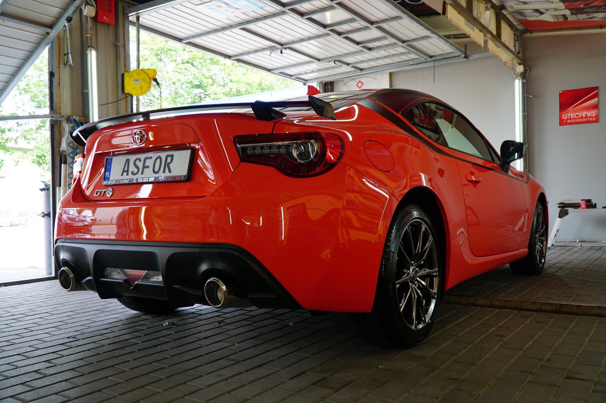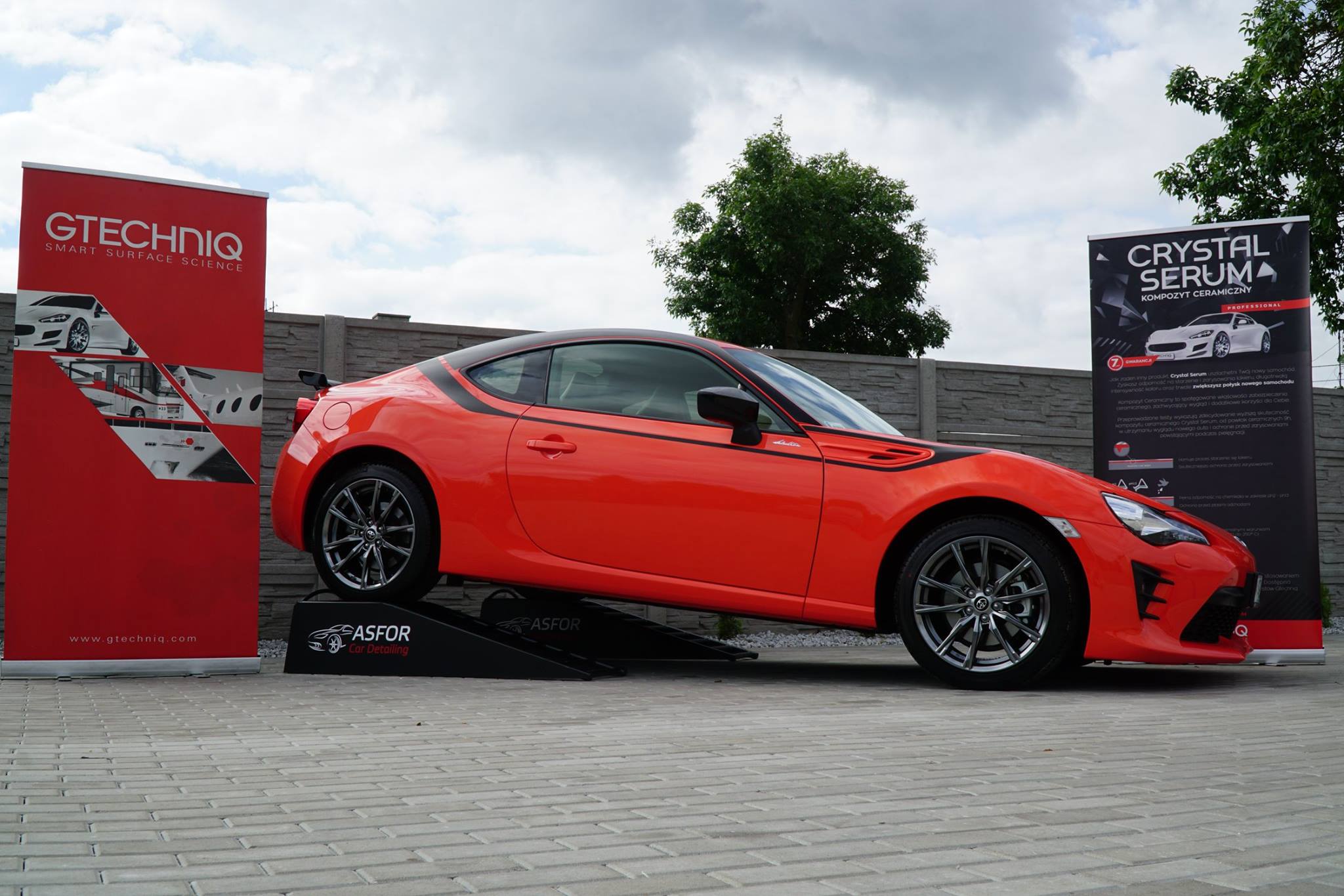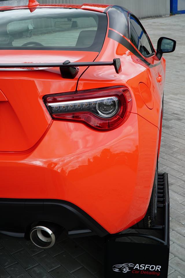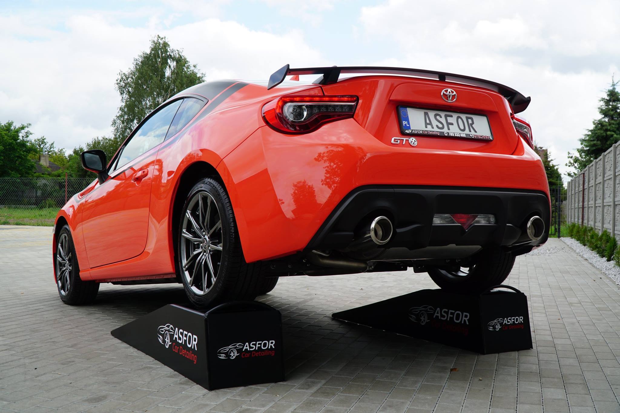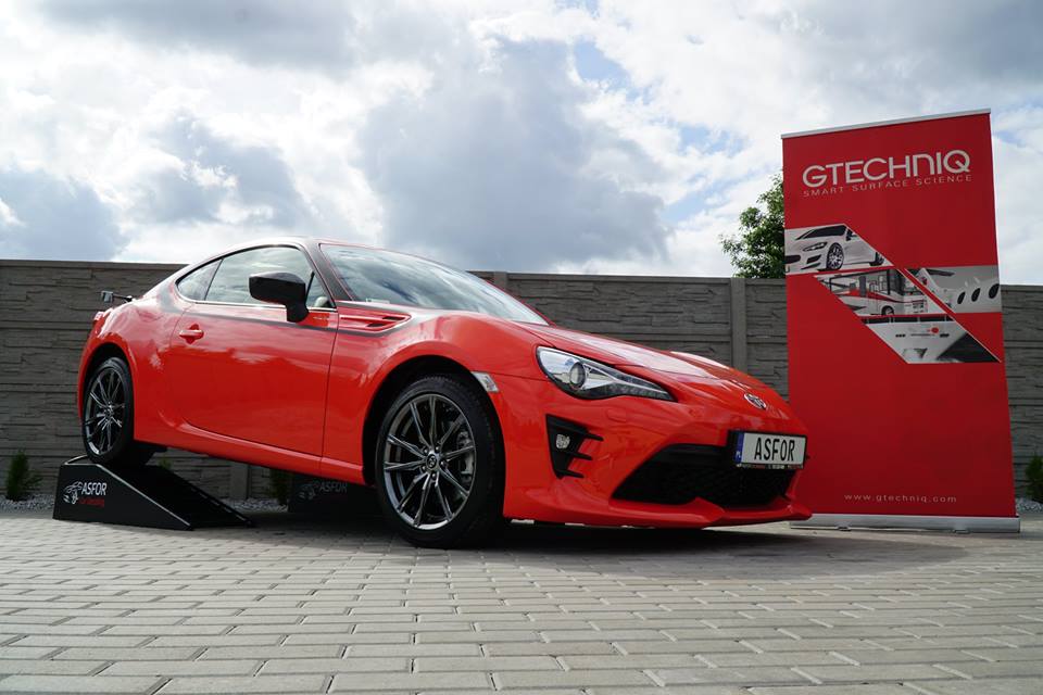 Nowa Toyota GT86 Selection Flame. W tej wersji,tylko 10 sztuk ze 184 na Europę trafiło na rynek Polski! 200 konna GT86 z silnikiem Subaru,wyróżnia się wyścigowymi wyklejanymi pasami i ciemnymi elementami zzewnatrz: lusterka,spojler i felgi 17 cali.Wewnatrz kilka innych dodatków,skóra i pomarańczowe przeszycia. Toyota przyjechała do nas pod koniec lipca z Toyota Zduńska WOLA na zabezpieczanie wszystkich mozliwych powieszchni preparatami od Gtechniq Polska : felgi szyby tworzywa sztuczne wnetrze,a przede wszystkim aplikacja kompozytu ceramicznego Crystal Serum Black z dodatkiem hydrofobowym EXO V3 - mniejsza ilość mikrozarysowań,szklistość i odporność na najwyższym poziomie,utrzymujacą się do 7 latProdukt dostepny tylko w akredytowanych studiach detailingowych w Polsce. ASFOR Car Detailing/CAR WASH & Detailing Łódź