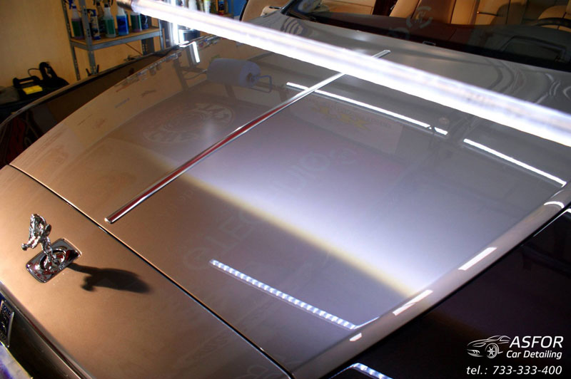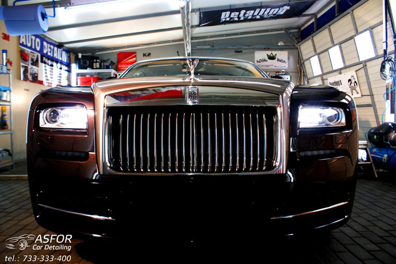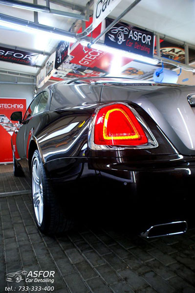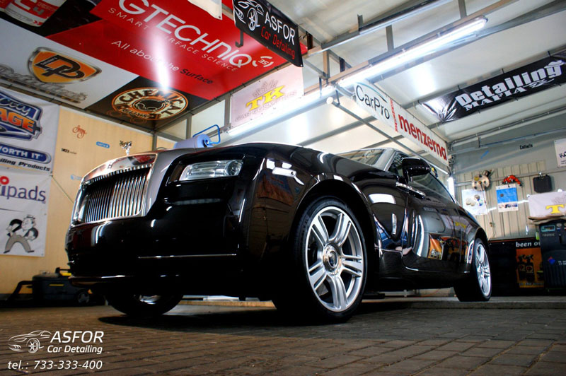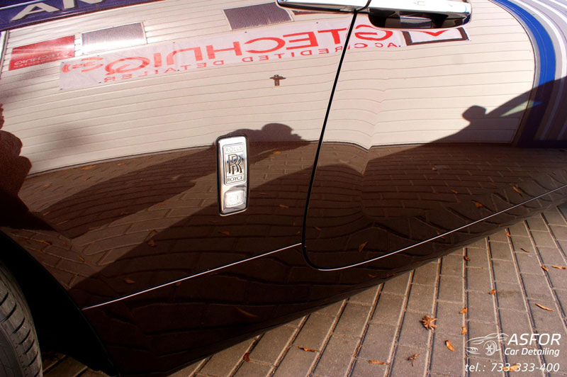 W zeszłym tygodniu zakończyliśmy prace nad grubszym projektem-Rolls Royce.Mimo tego że auto miało stosunkowo mały przebieg,na zewnątrz wygladało mało ciekawie-nie jak przystało na tą markę. Wszędzie swirlle i głębokie rysy od nieostrożnego mycia i użytkowania codziennego.Sześć dni zajęła nam praca nad karoserią,a doprowadzenie tego lakieru do stanu idealnego nie było łatwe..Dokładnie wyczyszczone nadkola i zaciski hamulcowe.Felgi wyglinkowane ze smoły i asfaltu-pokryte powłoką kwarcową GTECHNIQ C5 Wheel Armor,szyby GTECHNIQ G1 Clear Vision + G2.Chromy i el.chromowane wyczyszczone specyfikami od MOTHERS i FINISH CARE-zabezpieczone GTECHNIQ C1.Dwa dni również poszło na sam środek.Wypędzelkowane,odkurzone,wyprane chodniki z wełny Owczej.Skóra,również na podsufitce-oczywiście COLOURLOCK i zabezpieczona później GTECHNIQ L1 Leather Guard,elementy drewniane pokryte woskiem RACE GLAZE Wood Wax.Opony pokryte powłoką SOFT99 Black Hard Coat.Na sam koniec wykonczyliśmy klasyka oczywiście tym co mamy najlepsze..powłoką ceramiczną GTECHNIQ Crystal Serum Black:)Wszystkie zabiegi w Asfor AutoDetailing Łód