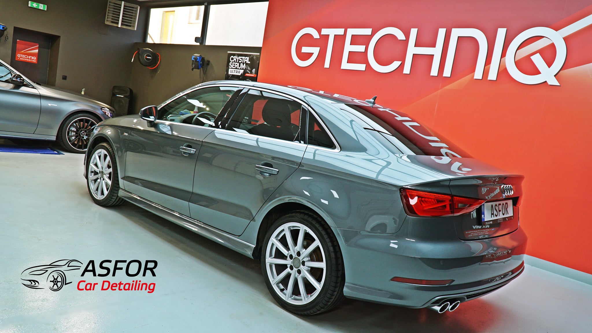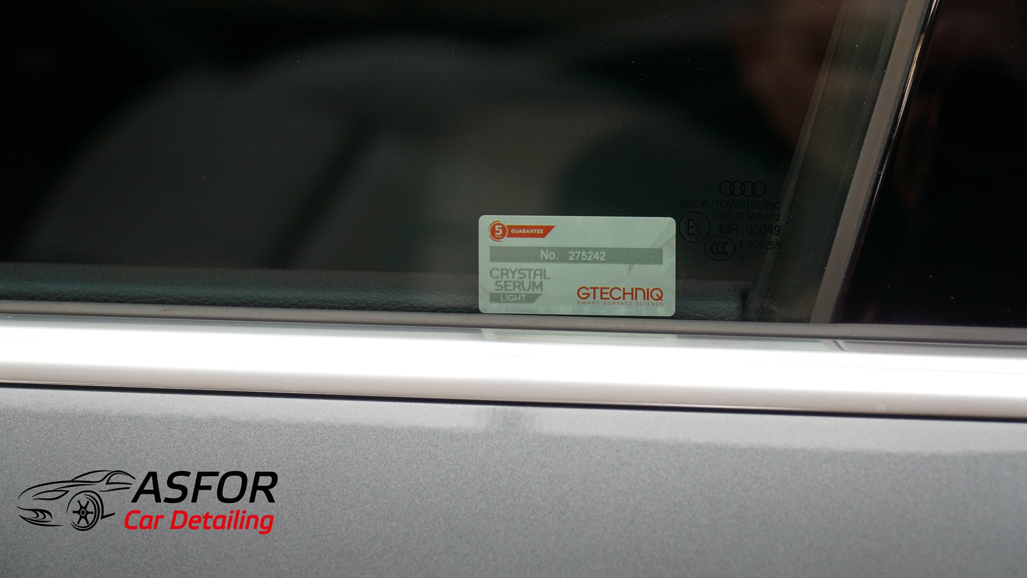 Wykonane również zabezpieczenie szyb i wnętrza pojazdu produktami od Gtechniq.