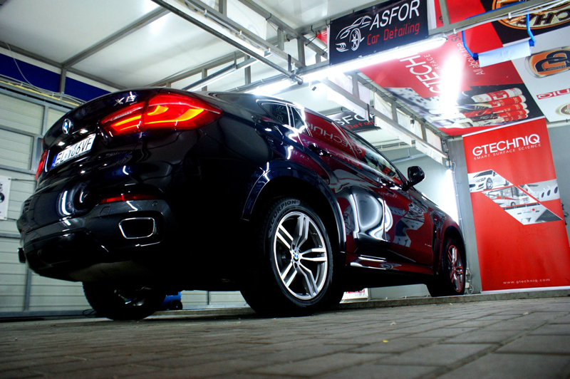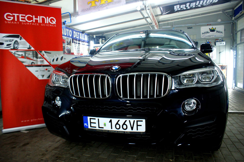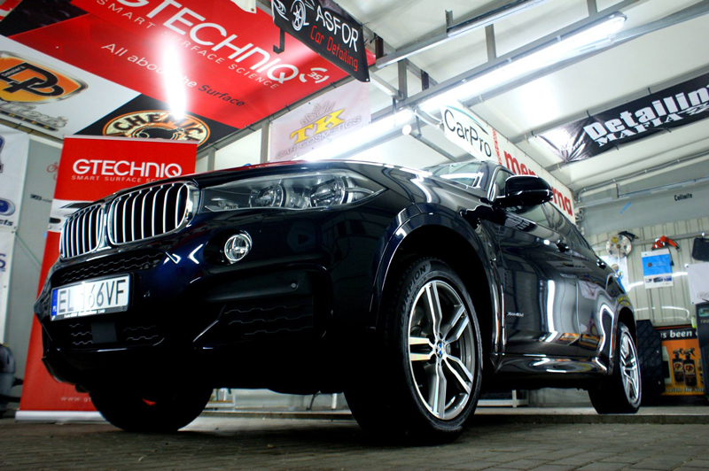 BMW X6,to jedno z ostatnich aut odpicowanych u nas w tym Roku:)Od odebrania z salonu przejechała 30tyś,przy czym zdażyła nazbierać minimalną ilość osadów drogowych na lakierze,nadkolach i felgach.Odwiedziła również kilka różnego rodzaju myjni samochodowych..została na 3dni.Karoseria po inspekcji wyglinkowana z dekontaminacji.Doczyszczone felgi.Na Aucie dookoła wykonany ONE STEP,następnie dokładnie wymyta i odtłuszczona.Na lakier zaaplikowana powłoka kwarcowa GTECHNIQ C1 Crystal Laquer + powłoka hydrofobowa GTECHNIQ EXO V2..