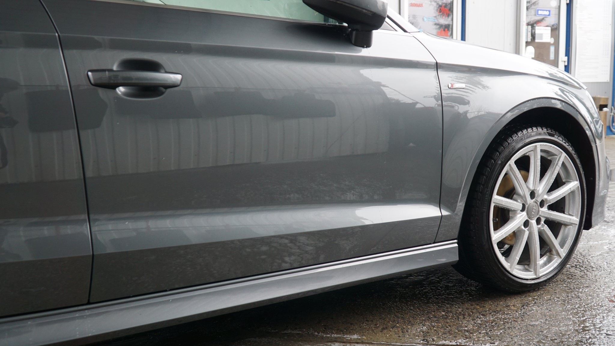 Miesiąc przed tym incydentem, aplikowaliśmy na to Audi powłokę ceramiczną Crystal Serum Light 9H, która zdecydowanie pomogła w usunieciu nabytego syfu i ograniczyła wnikniecie zacieków goracej asfaltowej smoły,w strukturę lakieru bezbarwnego.
