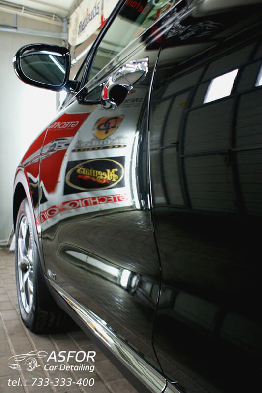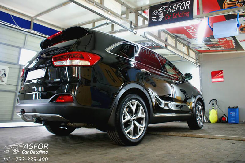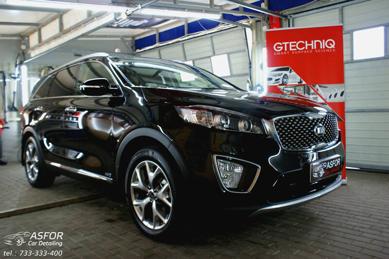 Kia Sorento 2016.Autko trafiło do nas z salonu na zabieg aplikacji kompozytu ceramicznego Crystal Serum Black 7i9h.Wszystko fajnie i cacy dopuki nie zrobiliśmy inspekcji lakieru..wstawieni w osłupienie na widok tego co zobaczyliśmy na karoserii-wszedzie swirlle i hologramy-masakra jakaś..już nic mnie nie zdziwi,jeśli chodzi o auta z salonu.Wspólnie z właścicielem zadecydowaliśmy o konieczności odświeżania lakieru na całym samochodzie.Tydzień minął-wyszło lepiej niż na nowym;) Dodatkowo na szyby położona niewidzialna wycieraczka od Gtechniq. Zabezpieczony został również środek auta.