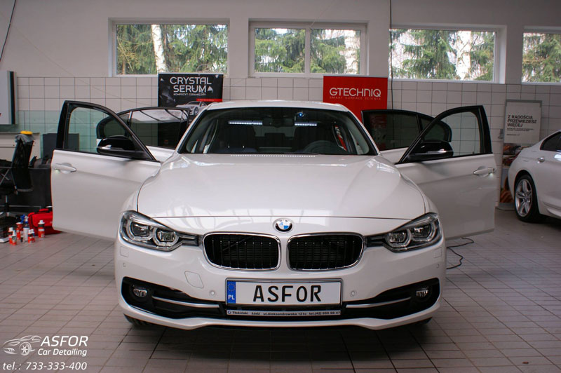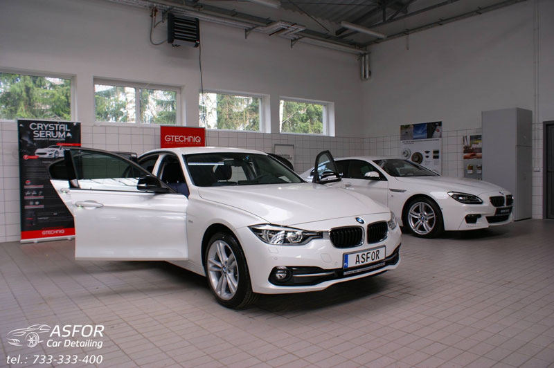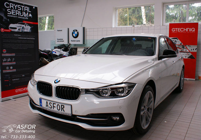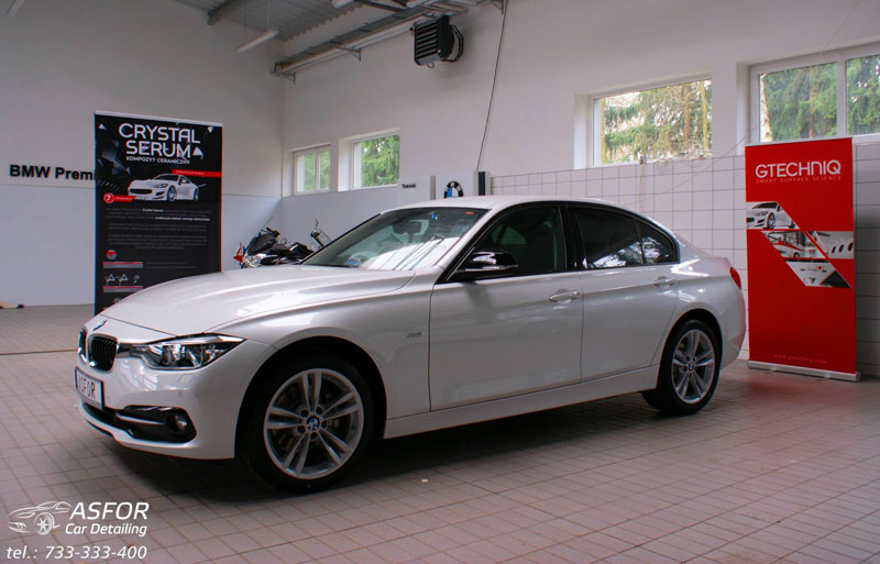 Nowe BMW serii 3 zabezpieczone na 7lat kompozytem ceramicznym CRYSTAL SERUM BLACK 7H i 9H,dostepnym tylko u akredytowanych Detailerów GTECHNIQ.Wszystkie szyby pokryte powłoką hydrofobową z gwarancją na 30tys.km.Wykonany również pakiet zabezpieczania wnętrza-elementy skórzane L1 Leather Guard,tekstylia I1 Smart Fabric,plastiki C6 Matte Dash..