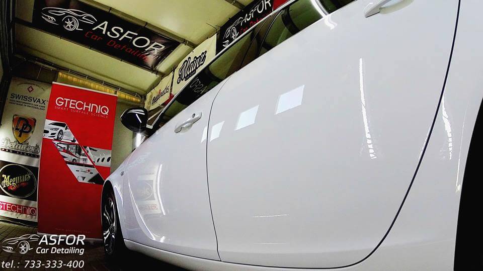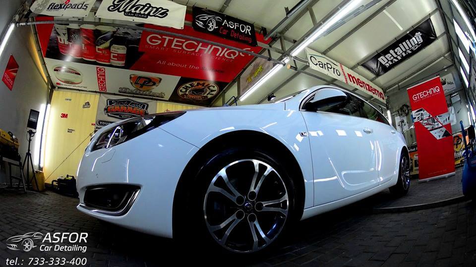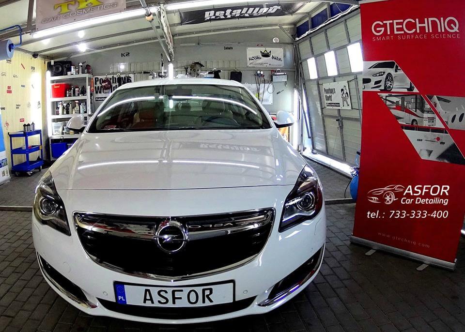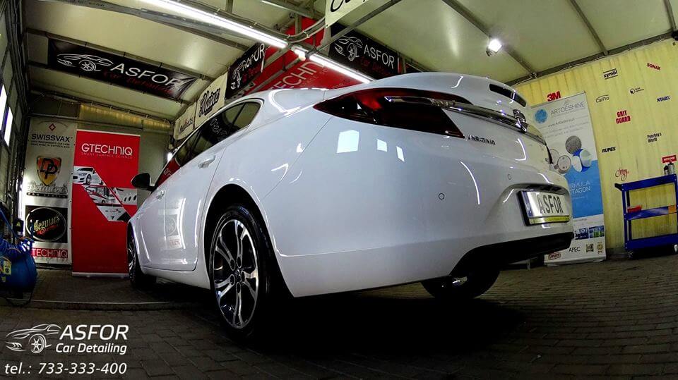 Roczny Opel Insignia.Auto poddane Valetingowi wnetrza z zabezpieczaniem skór i innych elementów.Przednia szyba pokryta na 30tys.km. niewidzialną wycieraczką G1+G2.Klosze lamp tylnych wypolerowane.Lakier po dekontaminacji odświezony i pokryty na 7 lat kompozytem ceramicznym Crystal Serum od Gtechniq..Biały też może się extra szklić :)