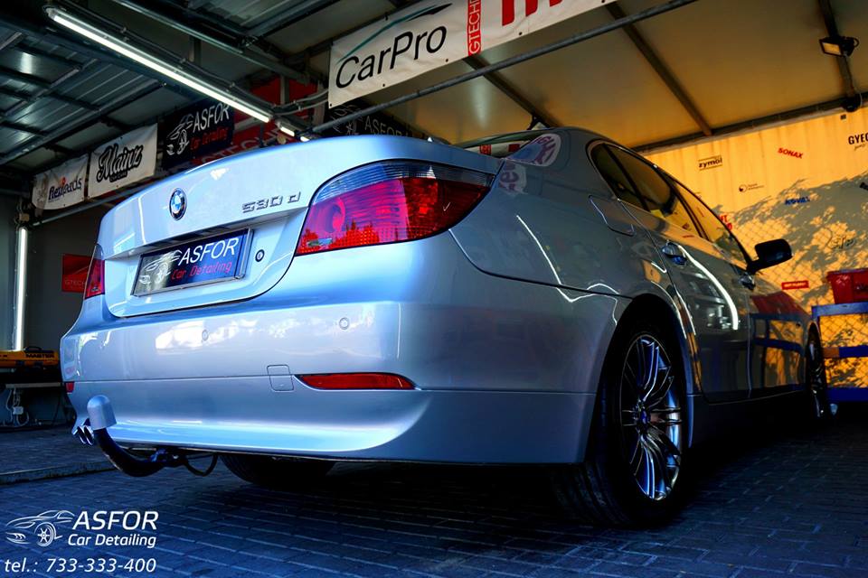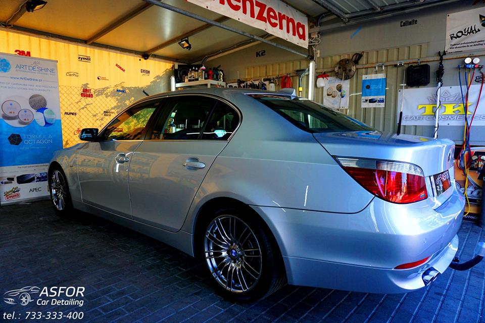 Bmw E60.Kolor srebrny,a gloss wyciągnięty:)Wykonany kompletny Valet wnętrza.Auto po myciu detailingowym i dekontaminacji z dodatkowym doczyszczaniem felg.Na lakierze wykonane odświeżanie jednoetapowe ONE STEP + aplikacja Japońskiego wosku:)Przednie i tylne lampy również odnowione i zabezpieczone powłoką kwarcową.