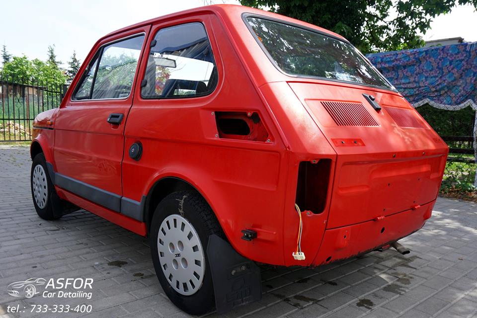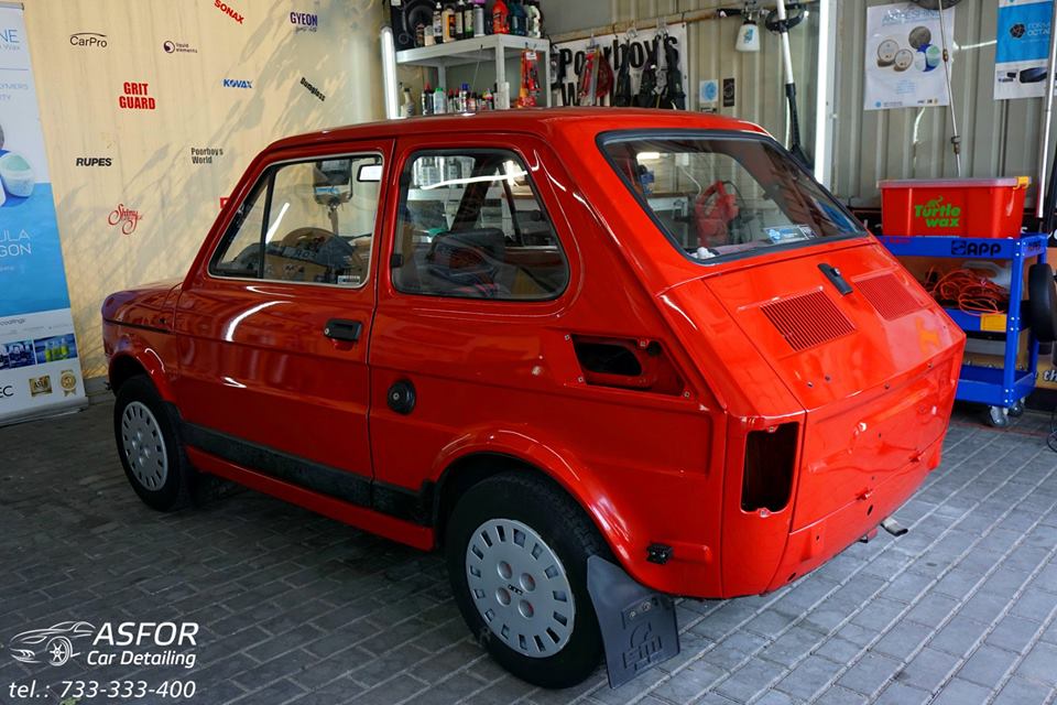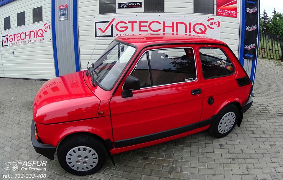 Klasyk Polskiej motoryzacji Fiat 126p przez okres wakacyjny przeszedł u nas generalną metamorfozę:)"Bobik" odswieżony po całości - silnik dokładnie wypędzelkowany i umyty,podwozie,nadwozie.Środek cały wyprany i pokryty dressingami.Lakier odświeżony i pokryty kwarcem od Gtechniq-elementy plastikowe również zakwarcowane:)Mimo poddanemu detailingowi wnetrza,oryginalny zapach w tym aucie pozostał..budzi wspomnienia:)serdecznie pozdrawiamy właściciela:)