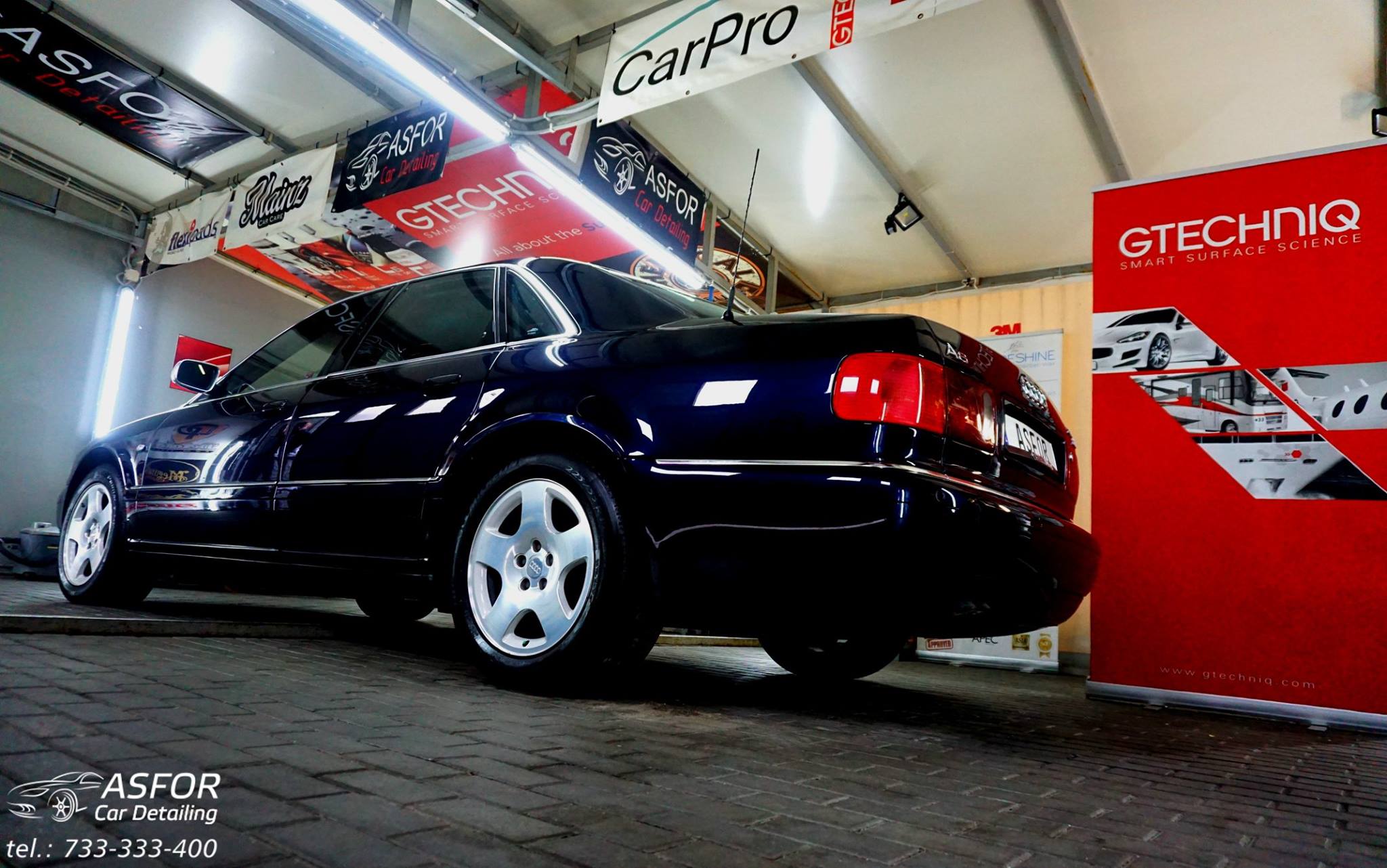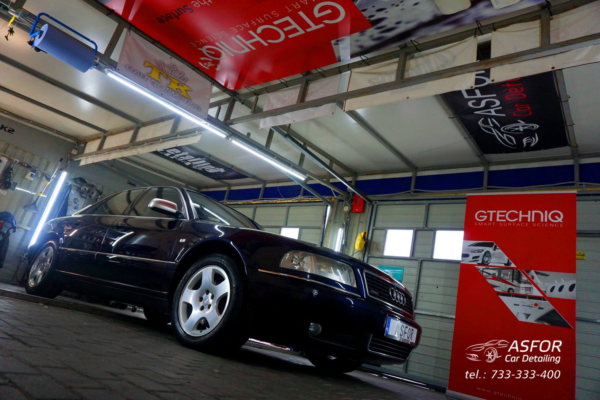 Audi A8-nominalny klasyk we wspaniałej kondycji,przeszedł u nas pełną,wieloetapową korektę lakieru.Lampy tylnie po renowacji,szyby wypolerowane i zabezpieczone.Wyczyszczone również wnetrze auta.Lakier na 7 lat pokryty kompozytem ceramicznym uzupełnionym powłoką hydrofobową czyli tzw.Crystal Serum Black :)