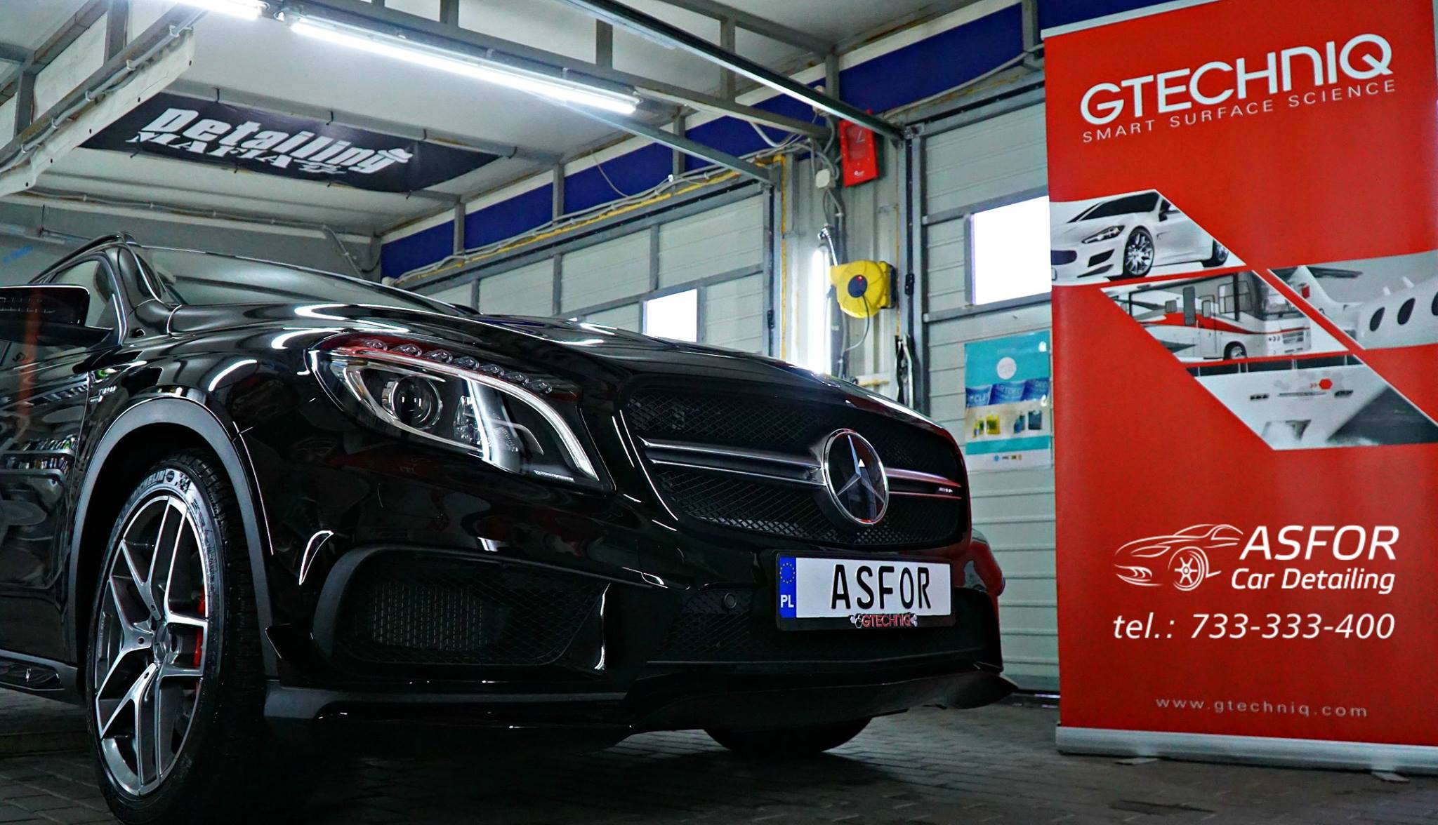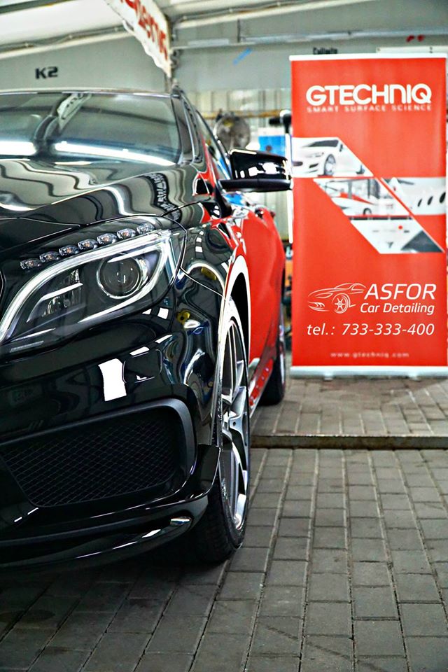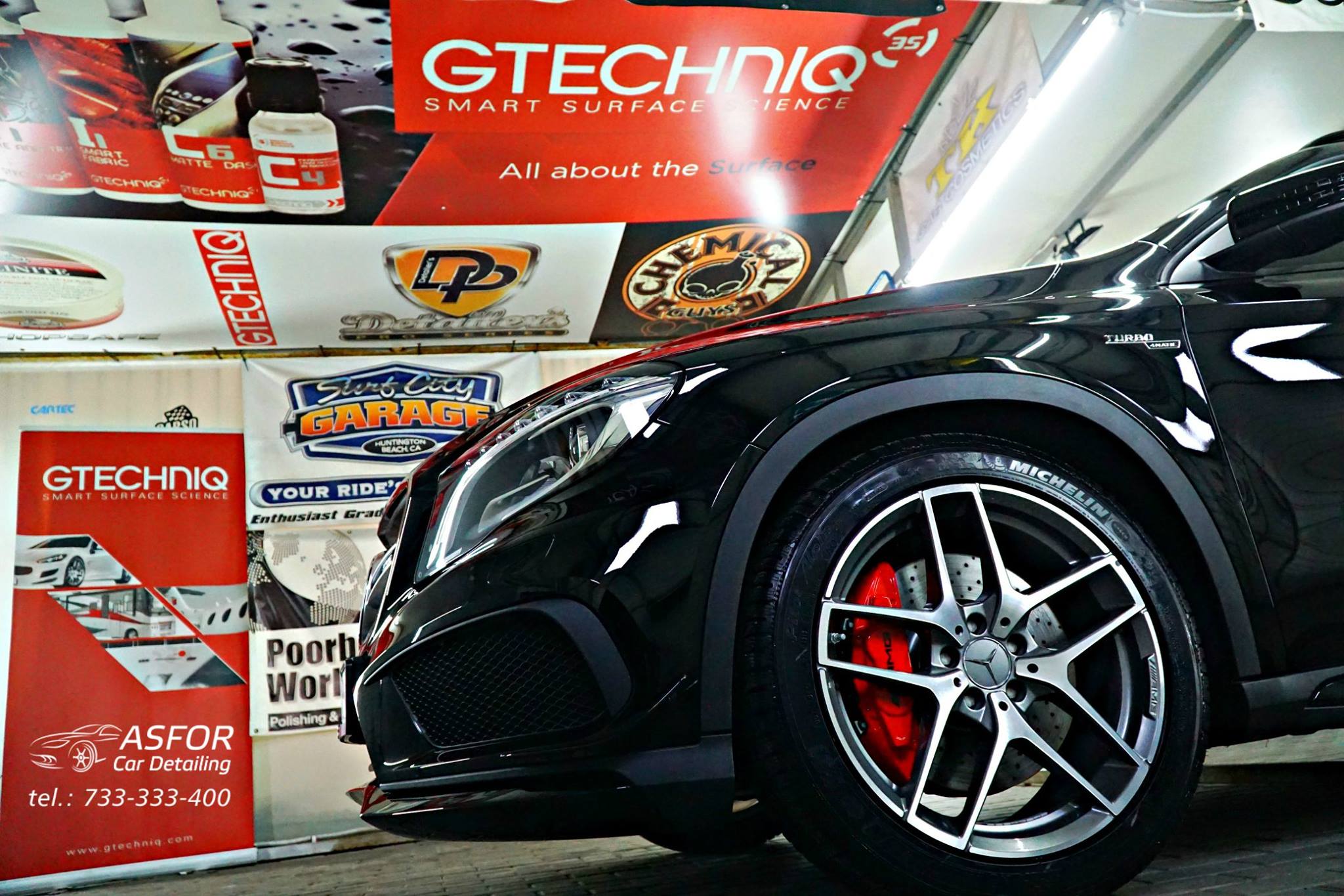 egoroczna zima powoli odchodzi w zapomnienie..Nowe GLA AMG 45,ze stajni Mercedes-Benz Polska Auto-Studio Łódź,poddane zabezpieczaniu powłoką ceramiczną Crystal Serum 9H z gwarancją na 5 lat,dostępnym w wersji konsumenckiej,jak i u akredytowanych detailerów Gtechniq Polska.Przed aplikacją,by pozbyć się mini hologramów i wydobyć maksymalny sheeting,czarny lakier poddany delikatnemu odświeżeniu.Felgi auta wraz z zaciskami pokryte powłoką kwarcowo-ceramiczną C5 Wheel Armour.Na szyby najtrwalsza z możliwych dostepna na rynku powłoka hydrofobowa G1 Clear Vision/trwałość do 30.000 kilometrów.Elementy plastikowe zzewnątrz zakwarcowane C4 Permanent Trim.Wnętrze pojazdu również zabezpieczone:-tekstylia produktem I1 Smart Fabric(impregnuje i chroni do 18 m-cy przed wnikaniem płynów i substancji oleistych)-deska rozdzielcza,plastiki winyle i guma produktem C6 Matt Dash działającym antystatycznie na wnikanie brudu i odpornym na ścieranie.By na karoserii do 18 m-cy zmaksymalizować efekt hydrofobowego zrzutu wody,podbić jeszcze bardziej szklistość,głębię i zdolności samooczyszczania,na koniec wykonana aplikacja nowegoEXO V3 na zabezpieczony już wcześniej lakier.