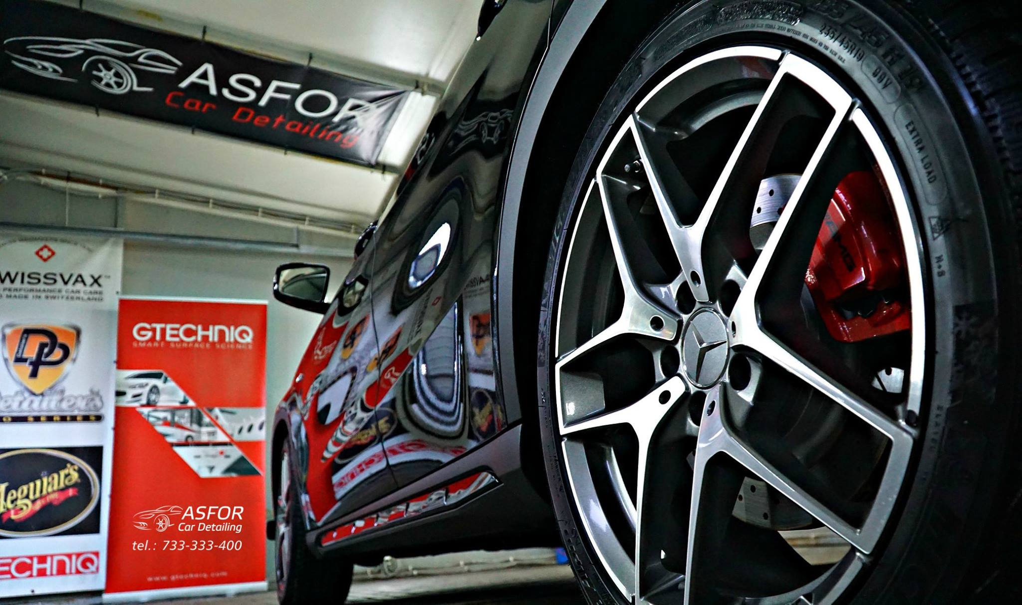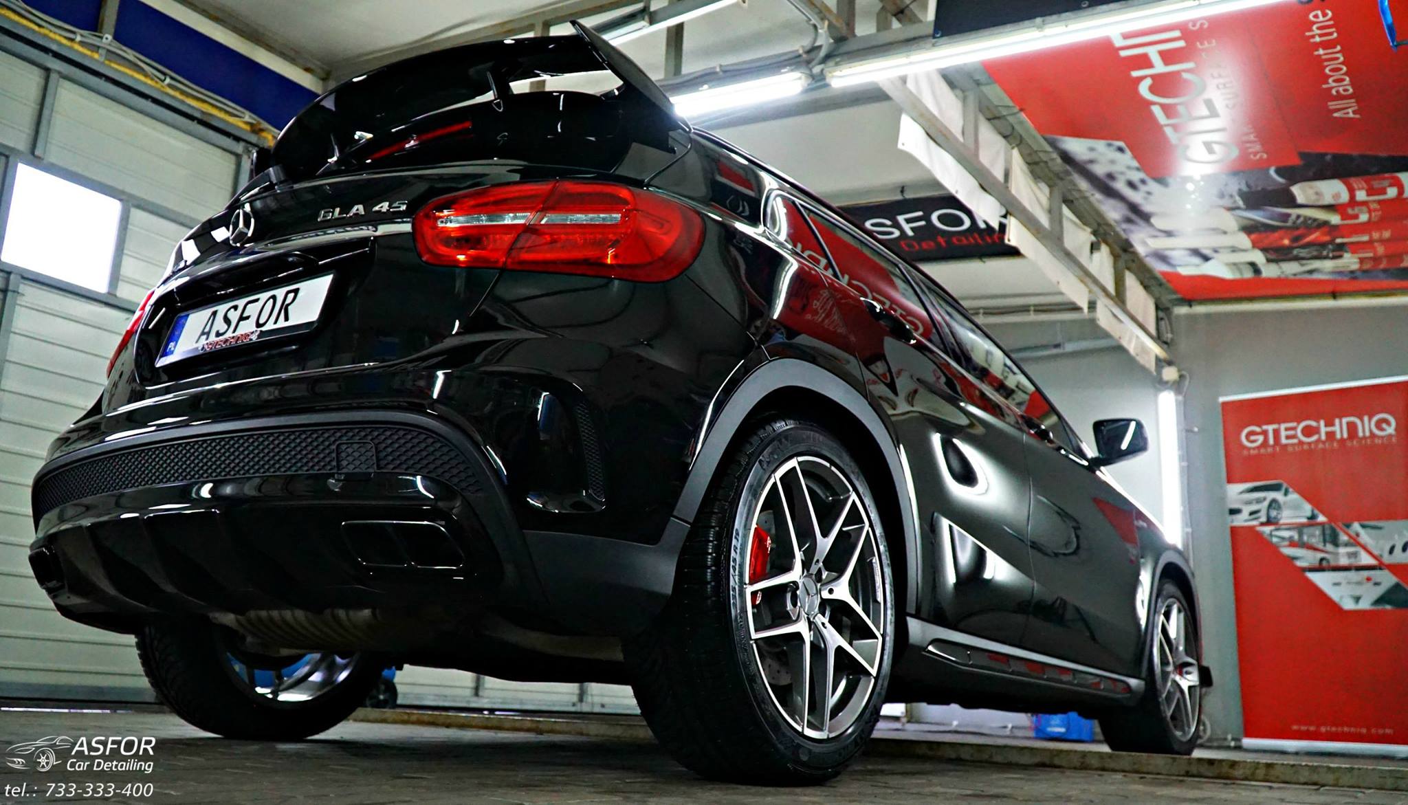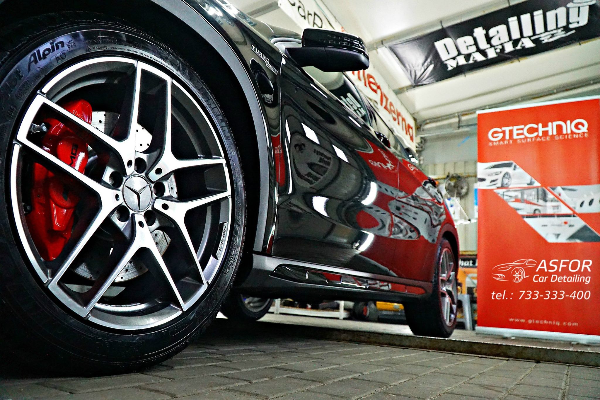 egoroczna zima powoli odchodzi w zapomnienie..Nowe GLA AMG 45,ze stajni Mercedes-Benz Polska Auto-Studio Łódź,poddane zabezpieczaniu powłoką ceramiczną Crystal Serum 9H z gwarancją na 5 lat,dostępnym w wersji konsumenckiej,jak i u akredytowanych detailerów Gtechniq Polska.Przed aplikacją,by pozbyć się mini hologramów i wydobyć maksymalny sheeting,czarny lakier poddany delikatnemu odświeżeniu.Felgi auta wraz z zaciskami pokryte powłoką kwarcowo-ceramiczną C5 Wheel Armour.Na szyby najtrwalsza z możliwych dostepna na rynku powłoka hydrofobowa G1 Clear Vision/trwałość do 30.000 kilometrów.Elementy plastikowe zzewnątrz zakwarcowane C4 Permanent Trim.Wnętrze pojazdu również zabezpieczone:-tekstylia produktem I1 Smart Fabric(impregnuje i chroni do 18 m-cy przed wnikaniem płynów i substancji oleistych)-deska rozdzielcza,plastiki winyle i guma produktem C6 Matt Dash działającym antystatycznie na wnikanie brudu i odpornym na ścieranie.By na karoserii do 18 m-cy zmaksymalizować efekt hydrofobowego zrzutu wody,podbić jeszcze bardziej szklistość,głębię i zdolności samooczyszczania,na koniec wykonana aplikacja nowegoEXO V3 na zabezpieczony już wcześniej lakier.