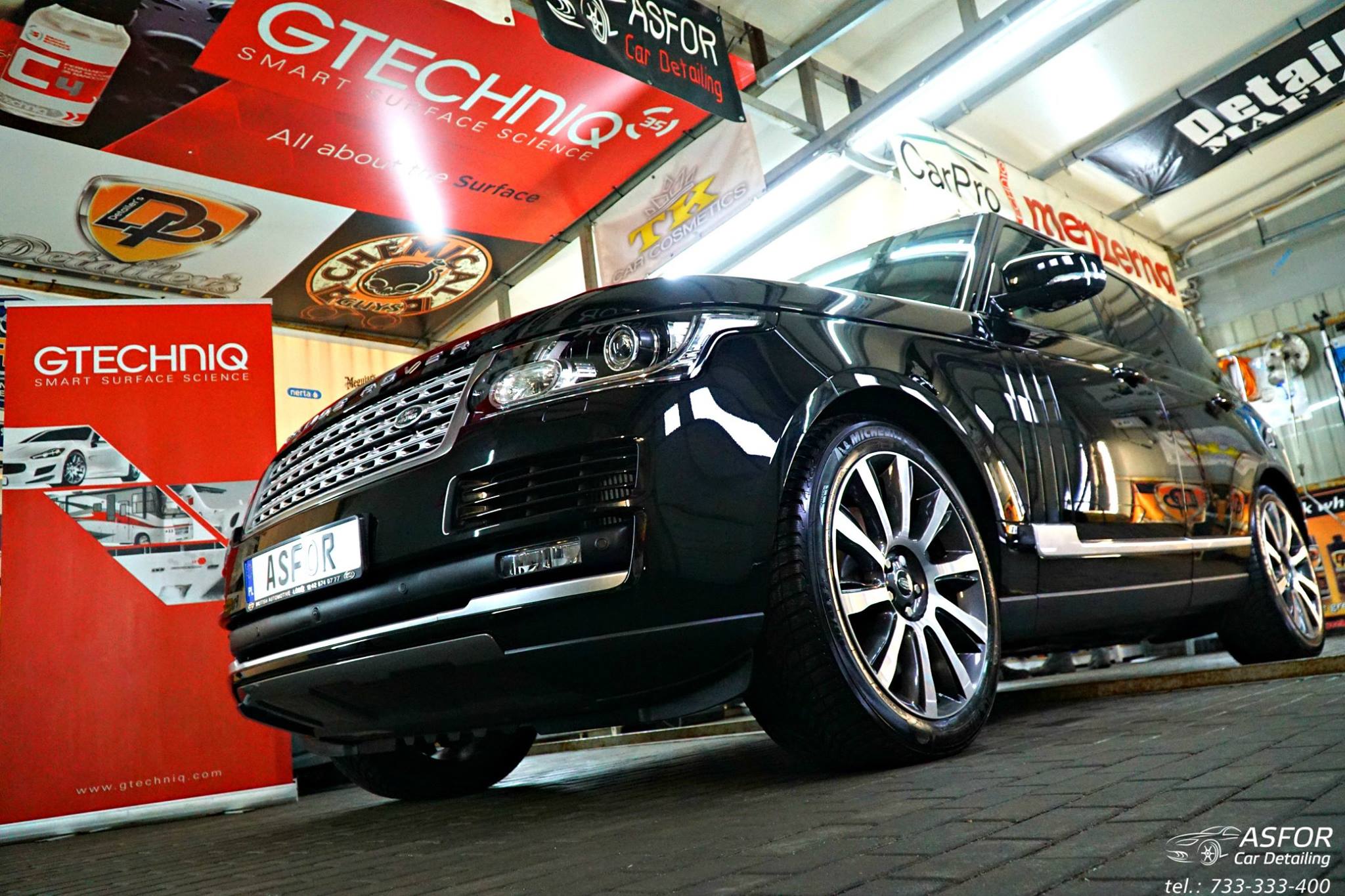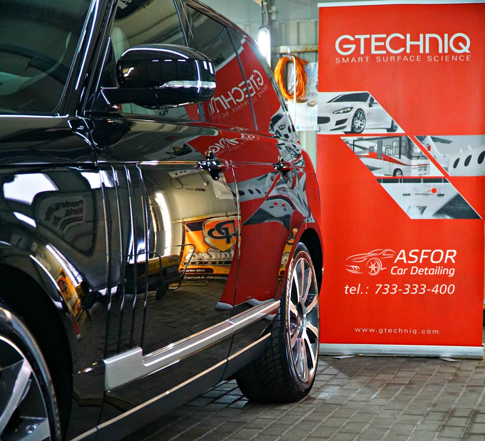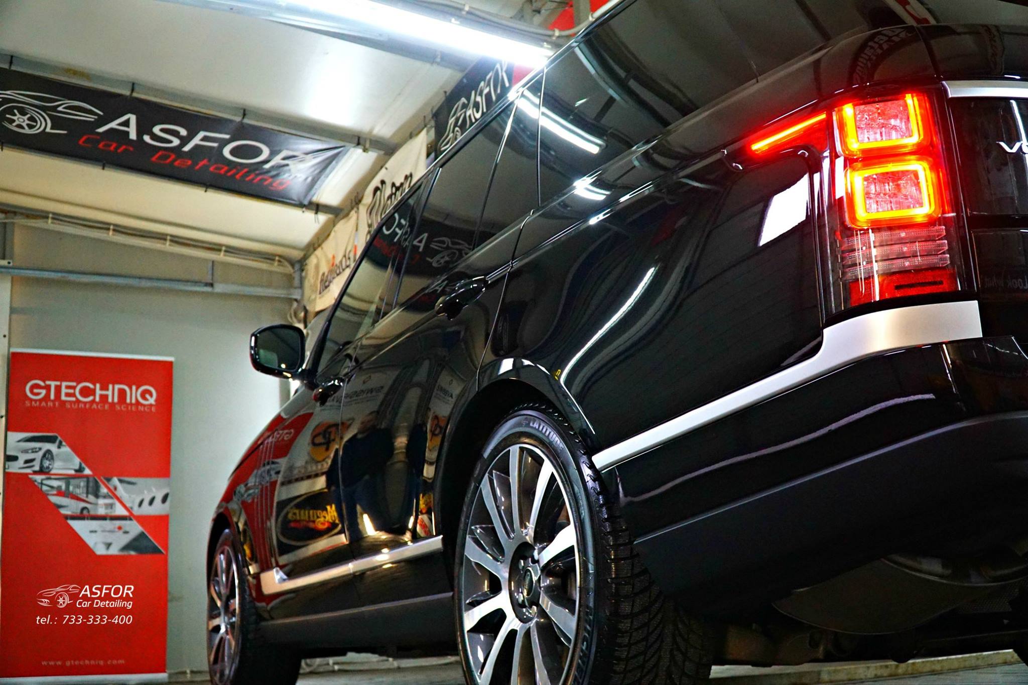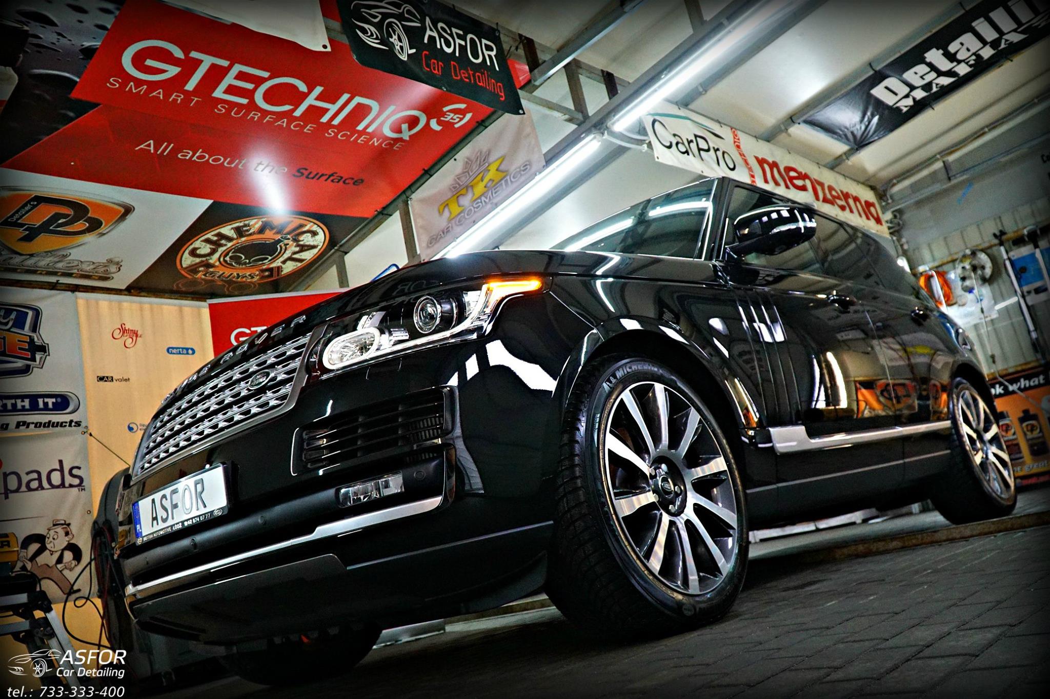 Nowy Range Rover po wizycie na myjni szczotkowej w Łodzi,po naszych zabiegach zyskał nowy,tłusty i elegancki wygląd ;)Pare postów wcześniej wrzucaliśmy fotki w jakim stanie trafiło do nas to autko.Przebieg 1400 km,poddane pełnej korekcie lakieru.Aplikacja Crystal Serum Light 9H na 5 lat pozwoli na utrzymanie czarnej tafli w super kondycji wizualnej i dodatkowo ochroni nadwozie przed mikrozarysowaniami.Dodatkowo powłoka hydrofobowa Gtechniq EXO V3 pomoże w jak najlepszym odprowadzaniu wody i co za tym idzie w samooczyszczaniu lakieru.Szyby pokryte powłoką hydrofobową G1 Clear Vision,by lepiej odprowadzać wodę podczas jazdy w deszczową pogodę.Wnętrze również kompleksowo zabezpieczone topowymi preparatami od Gtechniq.Zapraszamy do oglądania :)