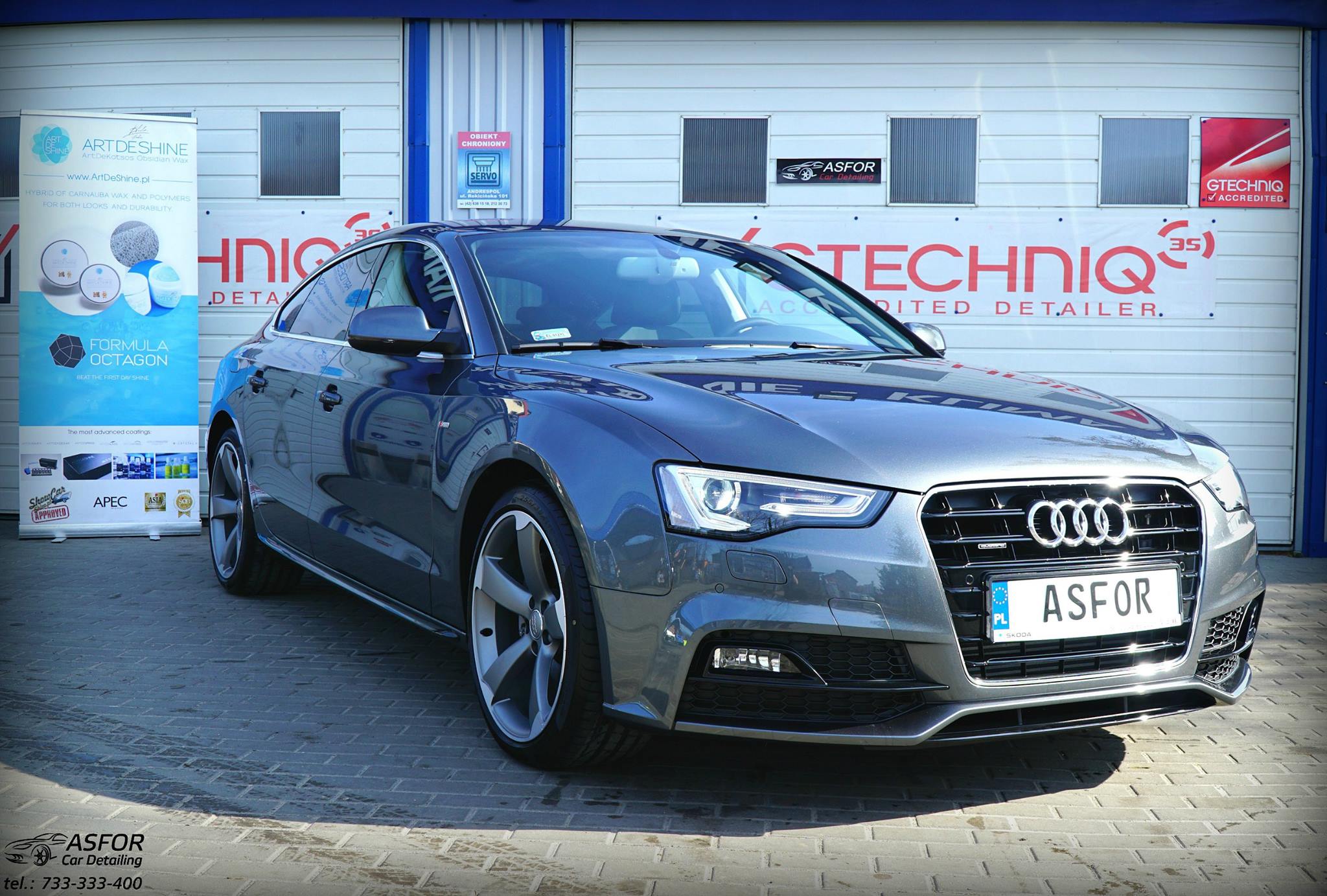 Słoneczną sobotę kończymy sportową limuzyną-Audi A5 Sportback z przebiegiem 300km.Karoseria pokryta woskiem klasy premium od #ArtDeShine's ArtDeKotsos Obsidian Wax.Jest to hybrydowy,zawierający w składzie najwyższej jakości wosk Carnauba oraz krzem używany najczęściej w powłokach kwarcowych i ceramicznych.Zrzut wody i trwałość do 6 m-cy.Artdeshine Poland ASFOR Car Detailing/CAR WASH & Detailing Łódźshowcarshine.pl