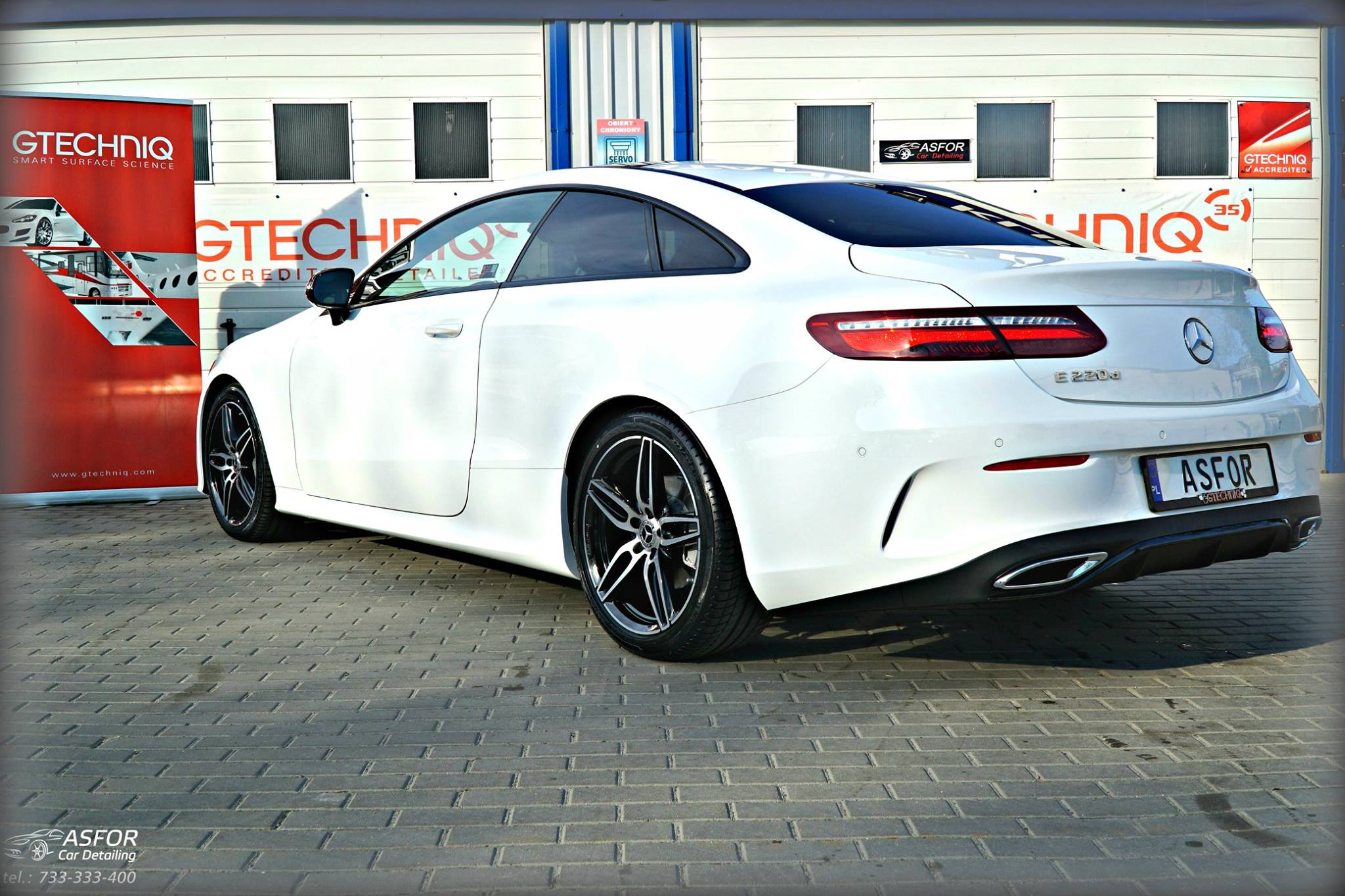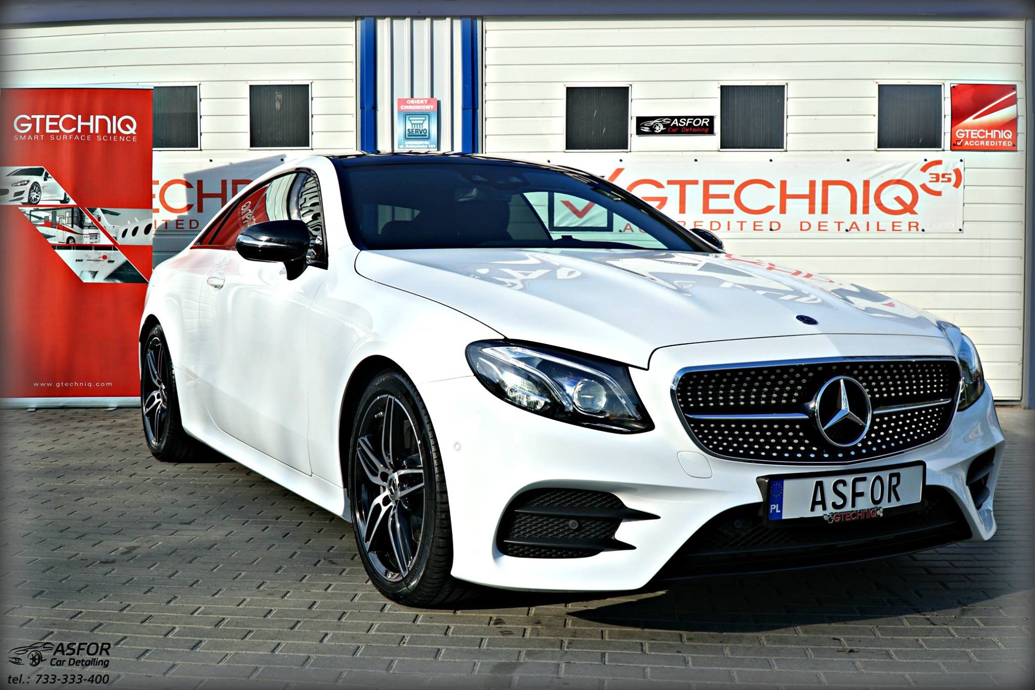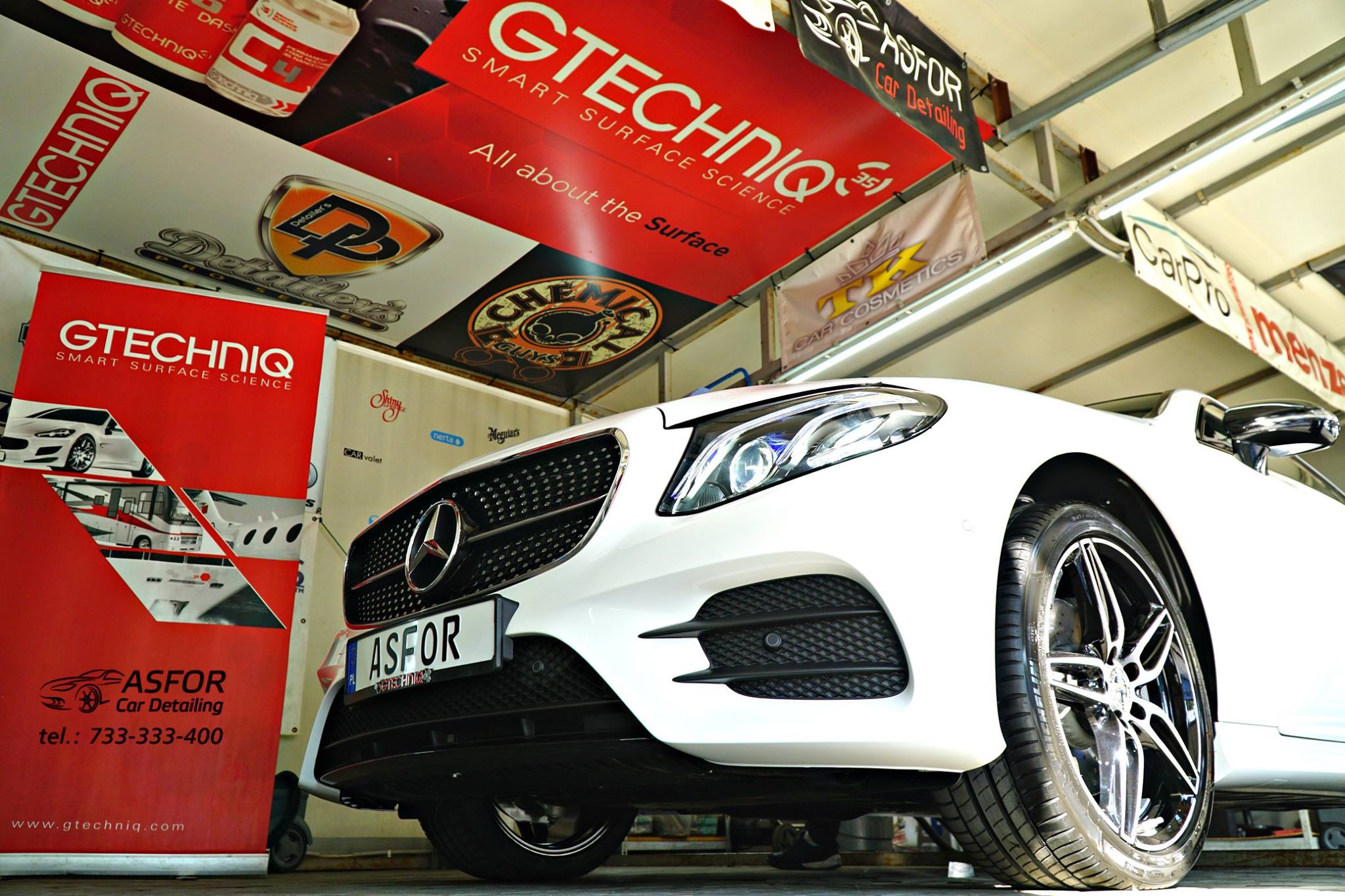 Odebrałeś nowe auto z salonu i nie wiesz jak ochronić swój lakier przed mikrozarysowaniami??Chcesz odnowić i zabezpieczyć auto uzywane lub Oldtimera na trzy,pięć lub siedem lat??Przyjedź,Napisz lub Zadzwoń!!!ASFOR Car Detailing/CAR WASH & Detailing Łódźtel.733-333-400ul.Rokicińska 13795-020 Andrespol(koło Łodzi)Nowy Mercedes E220 Coupe trafił do nas prosto z Mercedes Łódź Auto-Studio na kompletny pakiet zabezpieczeń od Gtechniq Polska.Pokryty kompozytem ceramicznym 7H i 9H Crystal Serum Black,dostępnym z gwarancją tylko w akredytowanych punktach w Polsce,skutecznie chroni lakier nawet do 7 lat po aplikacji.Różni się on od zwykłej ceramiki 9H wyższą odpornością na zarysowania i większym poziomem połysku widocznym nawet w przypadku jasnego koloru.Dzieki aplikacji dodatkowej powłoki hydrofobowej Exo V3,która skutecznie odpycha wodę i brud-mycie i pielęgnacja stają się o wiele łatwiejsze.Felgi auta pokryte powłoką ceramiczną,która jest odporna na mikrozarysowania i zapobiega przywieraniu brudu z klocków hamulcowych w wysokich temperaturach i trudnych warunkach drogowych.Wszystkie szyby by lepiej odpychać wodę podczas jazdy pokryte powłoką hydrofobową G1 Clear Vision z trwałością 20 000 - 30 000 km.Tekstylia we wnętrzu auta zabezpieczone przed wnikaniem wody i zabrudzeniami powłoką I1 Smart Fabric.Przed przebarwieniami i mniejszym zurzyciem elementy skórzane pomoże chronić L1 Leather Guard a o plastiki i deskę rozdzielczą zadba antystatyczne C6 Matt Dash,tworząc dodatkową powłokę ochronną odporną na płowienie i ścieranie.Zapraszamy do zapoznania się z nasza ofertą na asfor.pl